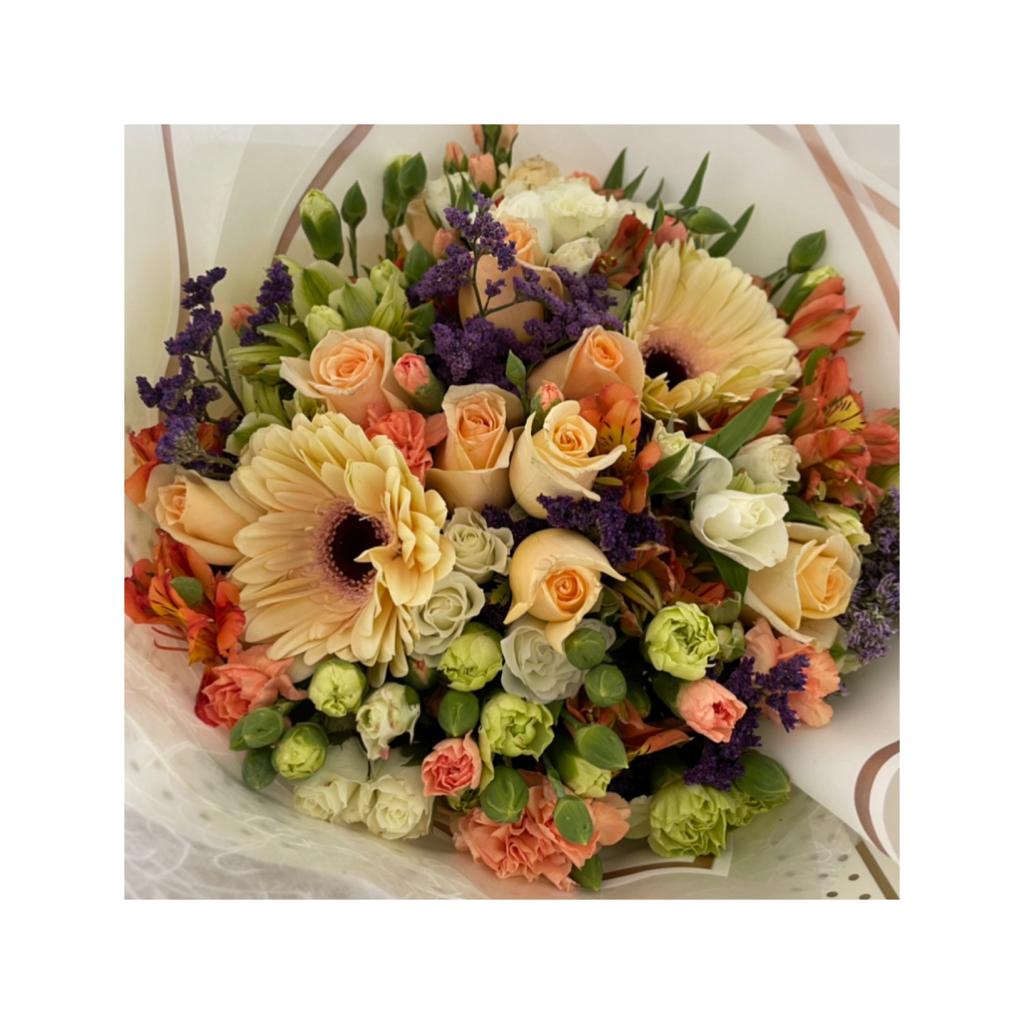 Un mix en tonos damascos y naranjos con contraste de tonos damascos , armonioso y elegante.
